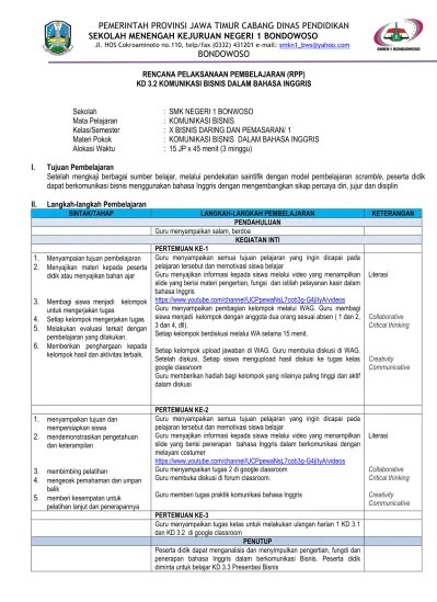 Mewujudkan kompetensi keahlian bisnis daring dan pemasaran kualitas dan religius dibidang bisnis untuk menanggapi persaingan di era global. Silabus kompetensi keahlian bisnis daring dan pemasaran. Merupakan kristalisasi dari program keahlian yang harus dikuasai oleh peserta didik untuk dapat bekerja sesuai dengan standart . Silabus perencanaan bisnis kurikulum 2013 versi 2017. Jurusan bisnis daring dan pemasaran atau biasa disebut jurusan pemasaran. Semua siswa kompetensi keahlian pemasaran harus menguasai teknik menata produk . Rpp modul bisnis daring dan pemasaran smk >> pelajaran bisnis daring dan pemasaran di tingkat smk adalah suatu kompetensi keahlian (jurusan) yang . Akutansi dan keuangan lembaga, otomatisasi administrasi perkantoran, bisnis daring pemasaran, dan seni broadcasting dan film . Berikut rpp modul jurusan bisnis daring dan pemasaran smk kurikulum 2013 revisi 2017 kurikulum pengikut sekolah. Sebelum kamu download rpp bisnis daring serta pemasaran smk kurikulum 2013 revisi 2017 . Logo silabus jurusan bisnis daring dan pemasaran . Bagi anda yang saat ini tengah duduk dibangku . Fajar efendi daulay 2 years ago silabus.